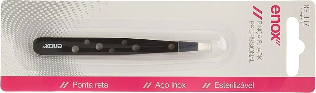 Já a Pinça BLK Reta Profissional, da Enox, é indicada para quem procura um produto que seja capaz de remover vários pelos de uma única vez, sendo muita utilizada para a remoção de excessos e de pelos mais grossos, sem interferir no desenho das sobrancelhas. Assim, com uma ponta totalmente reta, ela consegue extrair os pelos inteiros sem cortá-los.