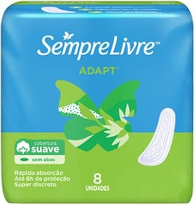 O absorvente Sempre Livre Adapt oferece até 6 horas proteção e um formato que se ajusta a qualquer calcinha, e ideal para mulheres que têm fluxos menos intenso ou um absorvente para usar nos dias finais da menstruação, este modelo é mais estreito atrás e não marca a roupa, de forma que você possa usar este produto com qualquer vestimenta sem a preocupação ou insegurança.