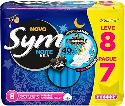 Desenvolvido com alta tecnologia, o Sym Absorvente Noite e Dia possibilita uma cobertura seca e em até 40% mais absorção, garantindo uma sensação agradável e suave para que as mulheres consigam ter mais conforto. Ideal para quem tem um fluxo moderado e até mais intenso, este modelo funciona para dia e também noite.