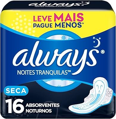 Trazendo 4 cm adicionais, o modelo noturno da Always ainda conta com uma barreira antivazamentos, uma cobertura de malha que absorve instantaneamente e também encapsula odores. Além disso, ele é mais fino e não te causa incômodos por ter um ajuste melhor na calcinha. Então se você busca comprar um produto completo e que ofereça conforto, escolha adquirir um deste modelo!