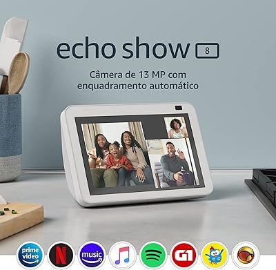 O seu visor de 8 polegadas é extremamente prático, e nele, você pode assistir a séries e filmes em HD e estéreo, conectado ao Prime Video, Netflix e mais. A Alexa também reproduz músicas do Amazon Music, Apple Music, Spotify ou Deezer, e ainda vêm com uma configuração para exibir uma foto em sua tela inicial, tornando um porta retrato digital.