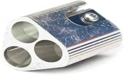 É um instrumento muito elegante e funcional, que segue a linha de apontadores tradicionais e muito populares no passado. O modelo conta com um sistema de três lâminas e nas laterais o modelo tem sulcos, que servem para garantir maior firmeza na hora de apontar o lápis. As três lâminas têm tamanhos diferentes e entregam diferentes tipos de pontas.