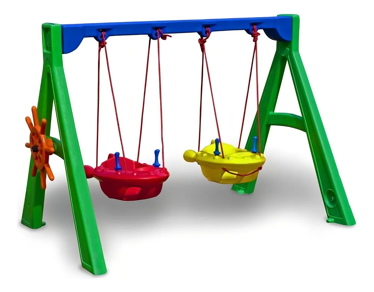 O Balanço Jet Duplo da Freso é uma boa opção de produto para crianças entre 1 a 3 anos de idade, mas principalmente para quem possui um ambiente externo bem amplo e até mais de duas crianças em casa, visto que contém 2 balanços em sua estrutura. O modelo tem um design colorido em forma de jatinho e um timão em sua lateral que gira de verdade.