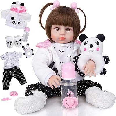 Bebê Reborn Boneca Silicone Menina Olhos Castanhos Panda 48cm Brastoy