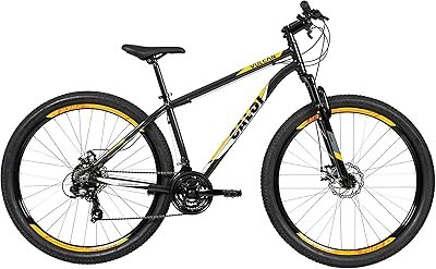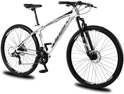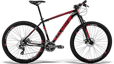 O aro 29 da roda garante um excelente diâmetro e uma boa sustentação para as trilhas. Além disso, o pneu cravejado ajuda a bike a ter mais tração e evita que ela escorregue, garantindo um caminho mais seguro e estável até mesmo em descidas. Esse modelo ainda conta com suspensão dianteira e pode alcançar até 24 velocidades, o que permite um desempenho maior em diversos tipos de terrenos.