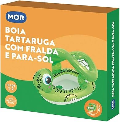 A Boia inflável tartaruga da MOR é bastante atrativa para as crianças devido ao seu design diferenciado que tem o formato de um animal, ela também conta com um para-sol que é possível remover caso necessário e um assento no estilo fralda e tudo isso foi pensado com objetivo de trazer mais segurança, conforto e proteção do sol para os pequenos.