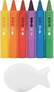 Trazendo seis lápis com cores diferentes, que vem acompanhado com uma esponja que serve para limpar a tela que a criança criou após o banho, o brinquedo permite aos pequenos libertar suas ideias desenhando nas paredes, chão e até neles mesmos.