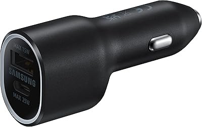 O carregador veicular de duas saídas USB-C/USB-A ultra rápido da Samsung é a melhor escolha para quem precisa carregar dispositivos móveis enquanto está em movimento. Este carregador veicular compacto e elegante oferece uma solução conveniente e eficiente para carregar smartphones, tablets e outros dispositivos eletrônicos enquanto dirige.