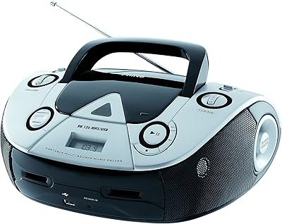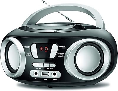 O leitor de CD portátil clássico possui o formato de uma boombox com um rádio. Com o adicional de sintonização em estações AM/FM, ainda existe a possibilidade de música na falta do CD. Sua primeira versão, leitora de fitas, também contava com esse recurso. O desenvolvimento tecnológico adiciona inúmeras novas opções a esse modelo.
