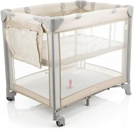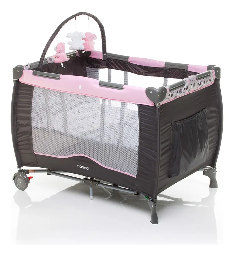 Este cercadinho portátil se destaca pelos seus benefícios extras,como a separação de duas alturas com zíper, tornando mais segura a distância do bebê entre a parede do berço e o colchonete inferior. O berço contém ainda rodas para a movimentação e laterais com rede arejadas, dispondo ainda de um bolso para guardar objeto removível e reposicionável em qualquer lugar do cercadinho.