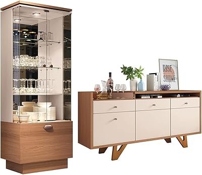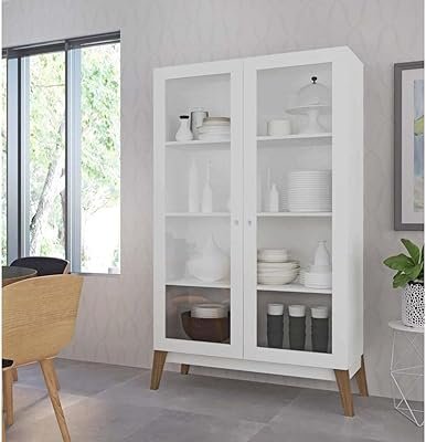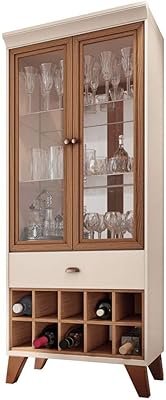 Suas dimensões são ideais para salas de estar ou jantar que são menores e que devem ter menos detalhes, já que compõem cômodos simples e minimalistas. Os principais detalhes estão em seus pés de madeira e em suas portas de vidro com bordas de madeira o que é ideal para guardar taças, pratos, copos e outros itens de cozinha.
