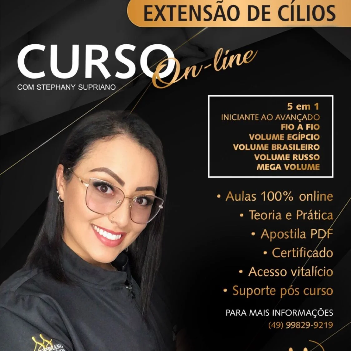 Sendo assim, você aprende o passo a passo das técnicas fio a fio e volume brasileiro, além de contar com outros detalhes de anatomia ocular, higienização, infecções, alergias, mapping, adesivo, tipos de fio, curvatura, espessura, peso, tamanho e muito mais.