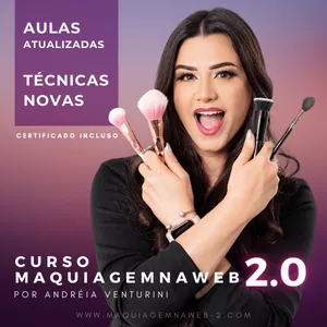 Outro curso de maquiagem profissional online desenvolvido pela especialista Andréia Venturini é o Curso Maquiagem na Web 1.0 – Técnicas Profissionais do Básico ao Avançado, indicado tanto para quem já possui experiência na área, quanto para quem está começando a aprender e quer descobrir os melhores truques de maquiagem.