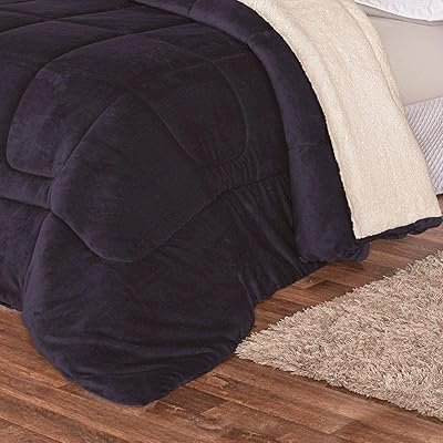 Disponível nas cores azul marinho, caqui, cinza, marrom, rose e vinho esse edredom é recomendado para quem procura um cobertor bastante quente para os dias muito frios ou para viajar em país que neva, pois ele é feito de microfibra e tecido sherpa que tem pelos e que aparenta ser lã de ovelha e, inclusive, proporciona elegância e sofisticação ao quarto.