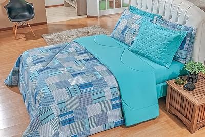 Além disso, ele tem uma linda estampa azul celeste que traz estilo e delicadeza ao seu quarto e também é dupla face, dessa forma, você consegue usá-lo dos dois lados, pois um é estampado e outro é liso na cor azul. Tem tamanho de 2,60m x 2,40m e deve ser usado em cama queen.