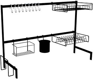 Ele tem 10 ganchos que servem para acomodar utensílios com alças como panelas, canecas e xícaras. Conta com recipientes separados para detergente, talheres e tábua de carne. Também há porta pratos e copos, onde cabem 10 unidades. Ele suporta até 20 kg, mede 83 cm de comprimento, e com o espaço para tábua de carne, 34 cm de largura.
