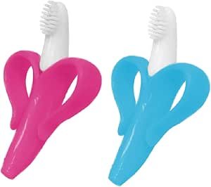O maior diferencial dessa escova é o design uma vez que ela tem formato de banana, assim a criança se sentirá atraída e se divertirá escovando os dentes. Além disso, a casca da banana forma dois círculos nos quais seu filho poderá apoiar os dedos durantes a escovação.