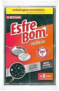 A Esponja Abrasiva Multiuso EsfreBom Verde/Amarelo é a opção para quem procura o produto com ótima qualidade. O produto é vendido em pacote de 4 esponjas, pagando apenas três! Do mesmo modo, ela é essencial para a casa, porque é composta por duas superfícies, que limpam desde gorduras e sujeiras mais pesadas, até copos, talheres e pratos.