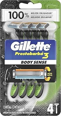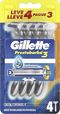 O Prestobarba3 é ideal para quem busca um barbeador que tenha um formato exclusivo que proporciona um controle de fácil manuseio. O cabo antiderrapante deste modelo da Gillete ajuda no manuseio do barbeador. Ele tem três lâminas sobre molas, montadas de forma independente e fita lubrastrip, que ajuda as lâminas a deslizarem suavemente pela pele.