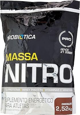 A Massa Nitro da Probiótica possui 2,52 kg de alta durabilidade, havendo em 360g uma média (3 shakes) de 25 gramas de proteínas e mais de 500 kcal. A sua fórmula é livre de glúten, além de ser composta por mineiras (pirofosfato de ferro, sulfato de zinco, sulfato de cobre, iodeto de potássio, etc.) que garantem 100% da ingestão diária recomendada em poucas doses.