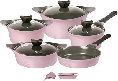 Esse conjunto de panelas da Neoflam do tipo Aeni da cor Rosa é um jogo maravilhoso de design diferenciado para quem quer algo mais sofisticado e único na sua cozinha. Essas panelas são feitas de alumínio injetado com revestimento Ecolon, tal revestimento proporciona anti-aderência sem ser prejudicial às pessoas e ao meio ambiente.