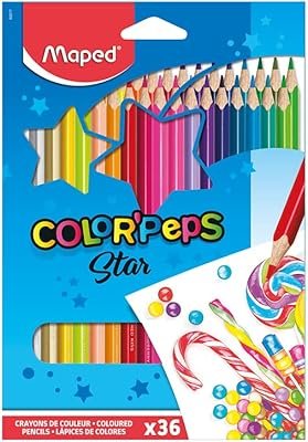 Os lápis da linha Color’Peps, da marca Maped, são mais uma opção para uso escolar, indicado para crianças por apresentar o formato triangular e a caixinha mais simples de papelão, característica que acaba barateando o custo do produto.