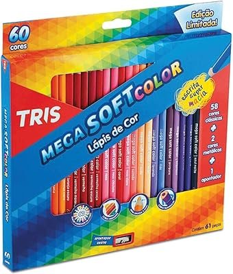 O Mega Soft Color Summit, da marca Tris, é uma ideal para aqueles que buscam uma opção de lápis escolares com muitas diversas cores. Disponível com kits a partir de 24 cores, a versão de 60 cores é a que apresenta o melhor custo-benefício, incluindo 2 cores metálicas e um apontador em sua caixa.