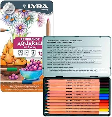 Os lápis Aquarell, da marca Lyra Rembrandt, são recomendados para uso profissional e vêm em kits com 12, 24, 36 e 72 cores. Além de ser possível adquiri-los de forma independente. O estojo com 12 cores é ideal para aqueles que desejam adquirir um produto mais profissional pela primeira vez ou experimentar os lápis da marca.
