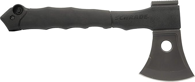 Esse conjunto exclusivo da Schrade é uma combinação de machado com serra embutida, ideal para quem quer uma ferramenta prática e multifuncional, além disso, a sua cabeça também oferece um batedor bem semelhante a um martelo. Como é um modelo compacto e leve é fácil de transportar e ótimo para atividades ao ar livre, como acampamento, trilhas e etc.