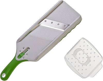 O mandolin da marca Benriner se destaca nesse segmento como uma solução prática para fatiar legumes no cotidiano. Feito de plástico conta com 3 tipos de lâminas de aço inox que regulam a espessura dos cortes entre 2 mm e 4 mm. Além disso, tem dimensões para fatiar alimentos grandes ou pequenos, são 31,5 cm de comprimento e 9,5 cm de largura.