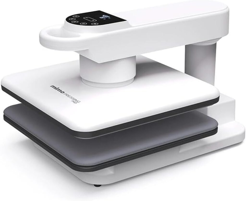 Este modelo da marca ‎Mimo é uma boa opção para quem quer uma máquina de estampar camisetas com preço mais conta e ótimo custo-benefício. Essa prensa térmica faz personalização em mouse pads, almofadas, chinelos, tábuas de vidro e outras coisas. Ademais, temos uma placa aquecida que sobe sozinha após a prensagem.