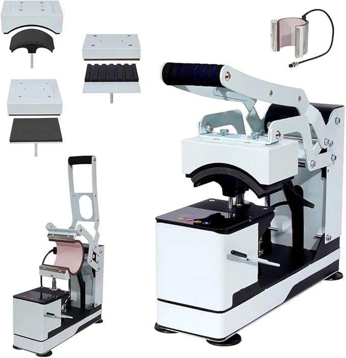 A potência é de 550 W, assim, esta máquina combina funcionalidade, precisão e praticidade, sendo perfeita tanto para iniciantes quanto para profissionais da sublimação. Com uma boa variedade de placas para estampar materiais planos, como bonés, lenços, tapetes, etc. Aliás, há um painel que permite alterar o nível da pressão de prensagem de acordo com a espessura do objeto.