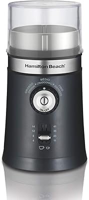 O moedor da Hamilton Beach ganhou o coração de seus usuários, porque trata-se de modelo elétrico com regulagem programada. Ele tem moagem fina, média e grossa tanto para grãos de café como temperos. No entanto, você não precisa segurar o botão e nem ficar observando quando o tamanho certo é alcançado.