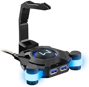 Também há lugar para colocar seus fones e tecnologia RGB com cores que podem ser fixas ou aleatórias, caso você prefira desse modo. A haste onde o fio fica é feita com uma borracha mole e se sobressai do dispositivo para melhor mobilidade do mouse. Além disso, por conter uma estrutura reforçada apresenta uma boa estabilidade sobre a mesa.