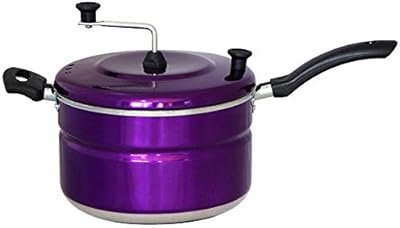 Se você gosta de utensílios domésticos mais tradicionais e de cor vibrante, vai gostar desta pipoqueira. Ela tem uma pintura externa envernizada, toda na cor lilás, bem vibrante, chamativa e toda feita em alumínio.