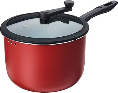 Esta pipoqueira de alumínio na cor vermelha na parte externa, com capacidade para 5,5 litros, pode ser ideal para você chamar amigos e familiares para uma sessão de filmes com pipoca. Além da cor quente e vibrante do vermelho, vem com tampa de vidro temperado, com borda preta de silicone que possibilita que você veja tudo por dentro, sem abrir a tampa.