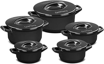 Indicado para famílias pequenas, o conjunto de panelas Duo+ da Ceraflame é composto por 5 caçarolas na cor preta com capacidade entre 900 ml e 3,2 L. Feito 100% de cerâmica apresenta boa resistência a choques térmicos. Além disso, pode ser usada em fogão elétrico, a gás, a lenha, no forno convencional e micro-ondas. Com um design bastante moderno, esse conjunto de panelas também conferem um toque de elegância na sua cozinha e na hora de preparar os seus alimentos.