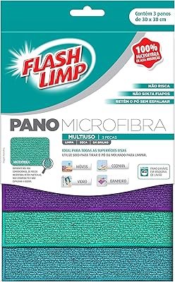 Se você está procurando um produto com o equilíbrio perfeito entre custo-benefício e qualidade, o Pano Microfibra Multiuso 3 Peças, da Flash Limp, está disponível nos mercados com um ótimo preço e é fabricado com microfibra, garantindo um excelente rendimento para a faxina.