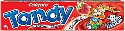 A linha Tandy, também da marca Colgate, foi a pioneira em lançar pasta de dente feita exclusivamente para crianças e faz muito sucesso até os dias de hoje. Tem um sabor maravilhoso de morango que incentiva a criança a manter a escovação regularmente. Em sua composição há flúor em 1100 ppm que evita o aparecimento de cáries e não contém açúcar.
