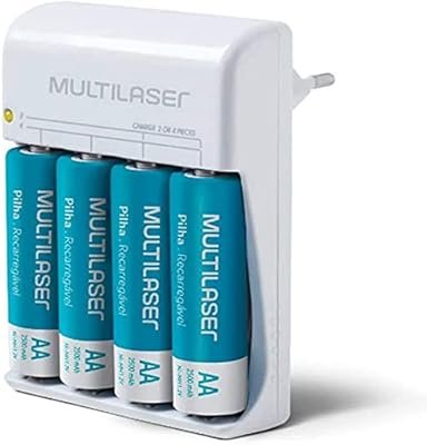 Indicado para usuários que querem ter uma qualidade imbatível de bateria para utilizar em seu controle de Xbox One e que tenha uma alta qualidade, esse modelo de carregador de pilhas recarregáveis da Multilaser é uma ótima opção de economia. Junto com o formidável carregador, a marca embarca 4 pilhas recarregáveis do tipo AA e com a tecnologia NiMH.
