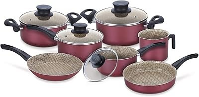 Todos os itens podem ser usados em fogão à gás, elétrico e vitrocerâmico e são antiaderentes, pois têm Starflon T1, ou seja, não deixam que a comida grude. As peças são feitas com revestimento de alumínio interno e externo e as tampas são de vidro temperado com saída do vapor e bordas de aço inox.