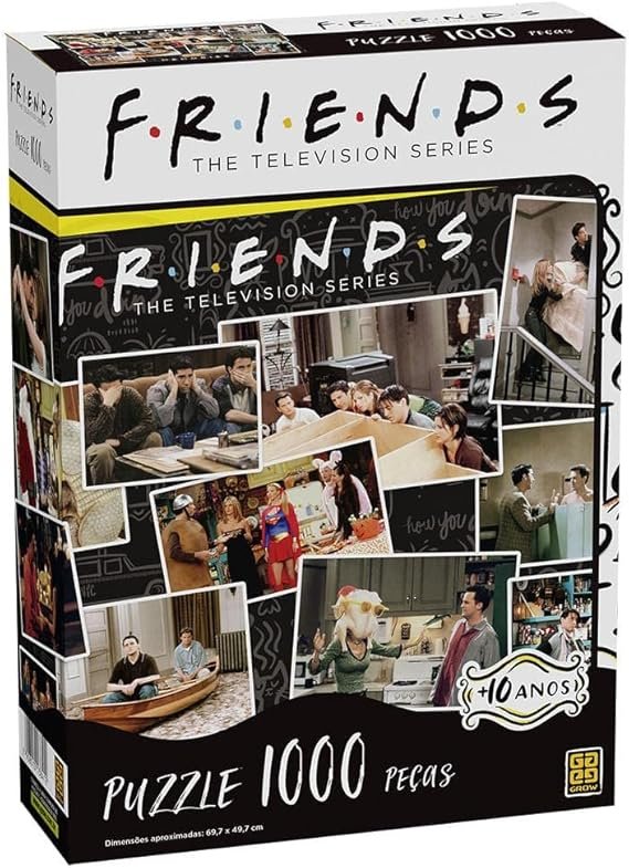 O quebra-cabeça de Friends possui em torno de 1000 peças e é fabricado através de papel, sendo indicado para crianças acima dos 7 anos de idade.