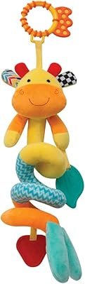 Sendo assim, a girafinha possui um chacoalho que emite barulhinhos, dois mordedores embutidos para o bebê, além de um design que permite pendurá-la ou enrolá-la em diferentes superfícies, tudo isso com cores vibrantes e alegres para estimular o bebê.