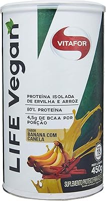 Livre de açúcar e glúten, o Life Vegan da Vitafor é uma combinação de proteína isolada de ervilha e arroz, com 80% de proteína por porção, incluindo 4,5 gramas de BCAA por porção, excelente para quem busca aumentar a massa muscular de forma eficiente, além de uma percentagem de proteína de 24 gramas por uma porção de 30 gramas.