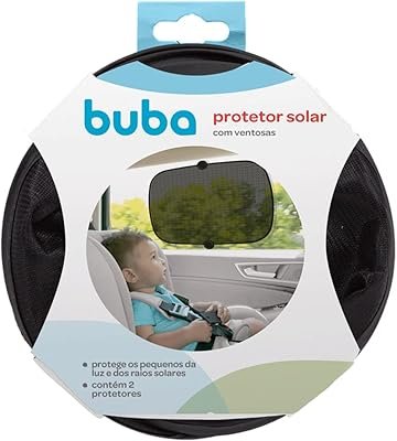 O protetor solar para carro infantil da marca Buba é indicado para proteger as crianças dos raios solares. É fixado no vidro por meio das ventosas, sendo de fácil instalação e podendo ser utilizado nos vidros laterais do veículo.
