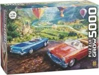 Este quebra-cabeça de 5000 peças é ideal para aqueles que amam belas paisagens e carros clássicos conversíveis. A paisagem caracteriza por sua vegetação e um enorme rio ao longo da imagem. Além disso, os carros têm cores muito bonitas, sendo um deles vermelho e o outro azul e há balões coloridos que sobrevoam os céus.
