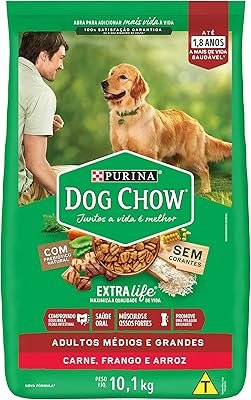 A fim de garantir o sustento necessário ao seu cachorro, a Dog Chow extra life Purina possui muitas vitaminas e antioxidantes. Os carboidratos, gorduras boas e a ótima quantidade de proteínas tornarão o seu cão mais saudável e disposto. Além disso, a ração consegue saciar o cachorro mais rápido, evitando que ele ganhe muito peso.