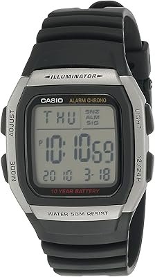 O melhor relógio digital para o dia a dia de quem tem como objetivo adquirir um acessório discreto, prático e funcional é o W-96H-1AVDF, da marca Casio. Sua caixa é confeccionada em aço inoxidável, que oferece maior resistência e durabilidade, e o display conta com luz de LED, que facilita a visualização, mesmo em ambientes escuros. Para que você esteja sempre atualizado durante a rotina, ele emite um bipe a cada hora.
