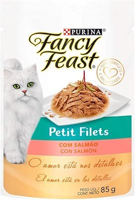 O sachê Nestlé Purina Fancy Feast é conhecido por ter uma experiência gastronômica com uma variedade diferentes de sabores para gatos que preferem algo mais específico, este é indicado para gatos adultos com faixa etária de 1 a 7 anos tendo o sabor de salmão. O sachê vem com tiras de salmão macio com um molho aveludado por cima.