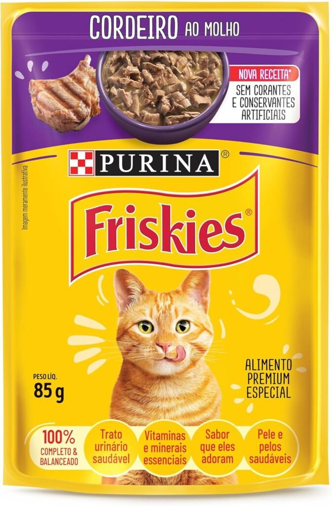 O resultado é um alimento que cuida do corpo do gato por dentro e por fora, ajudando a manter um peso saudável sem abrir mão do prazer de comer. Temos, ainda, 85 gramas em cada embalagem. Os sachês da Friskies Purina não tem conservantes e nem corantes artificiais e possui uma textura de granulado com um molho aveludado.
